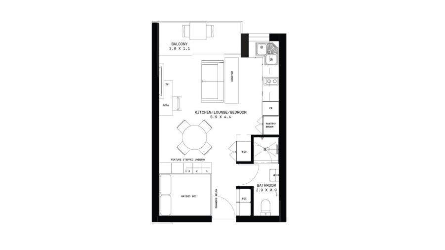 You'll find a plush bed with abundant storage for restful nights, a comfortable sofa for unwinding with your favorite shows on the Smart TV, and large glass doors that open onto a private balcony. Channel your inner chef in the impeccably equipped kitchen, or refresh in the sleek bathroom, complete with a modern walk-in shower.