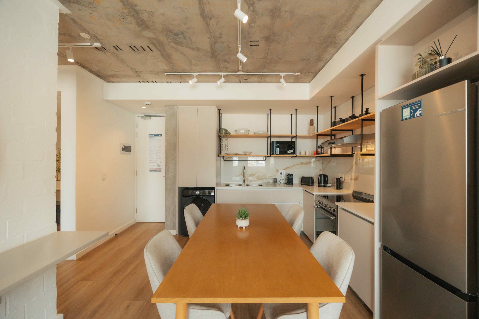 Unwind with your favorite shows on the Smart TV or channel your inner chef in the impeccably equipped kitchen. The sleek bathroom, complete with a modern walk-in shower, promises a spa-like experience every day. Nestled within the prestigious EIGHTY2 ON M, this residence not only offers unparalleled luxury but also supports your well-being with exclusive convenience of self-service laundry facilities, A breathtaking Rooftop Pool & Lounging area, and delightful Communal Spaces to socialize and unwind.