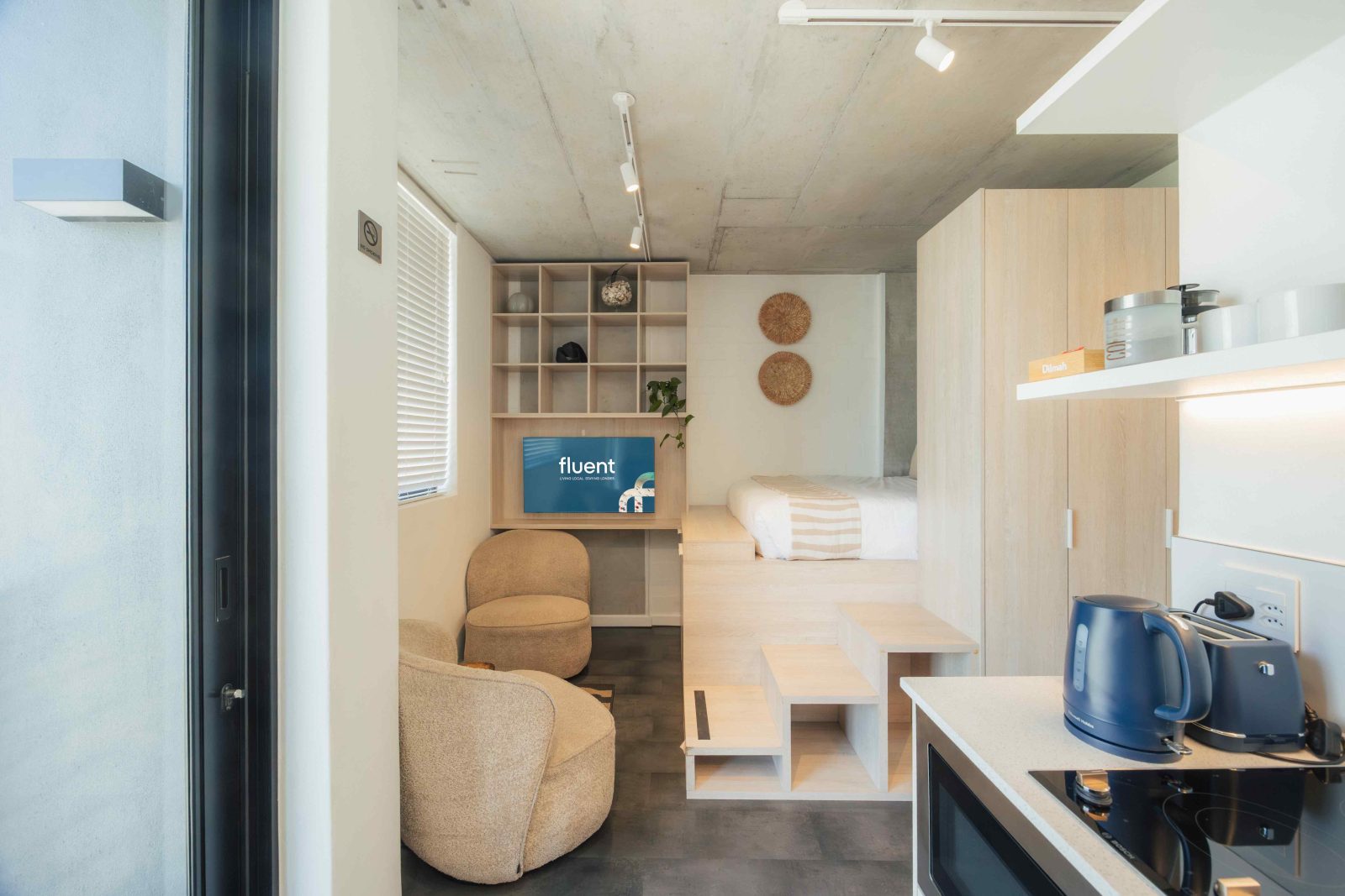 You have access to the entire apartment as well as all the common areas in the building, which include the rooftop deck with its communal pool and spectacular views. Meeting pods and rooms can be booked online.