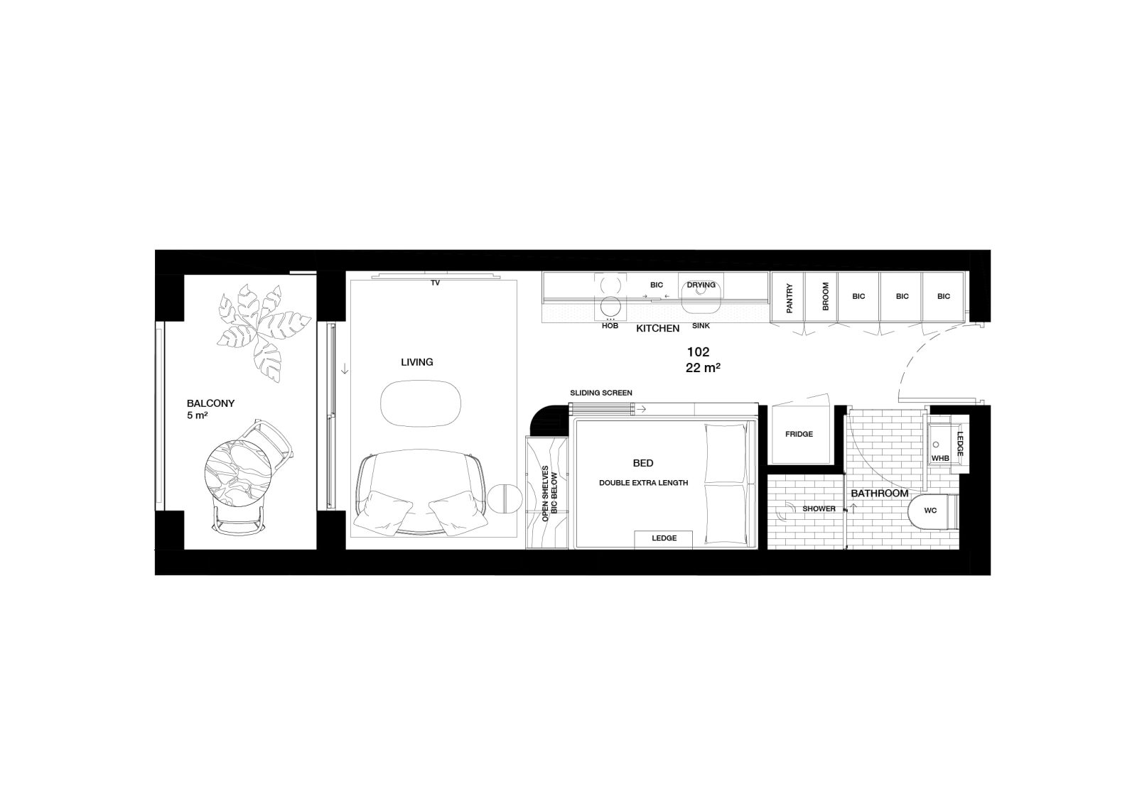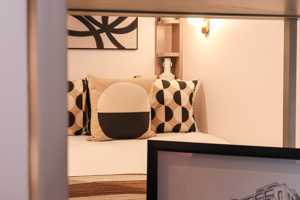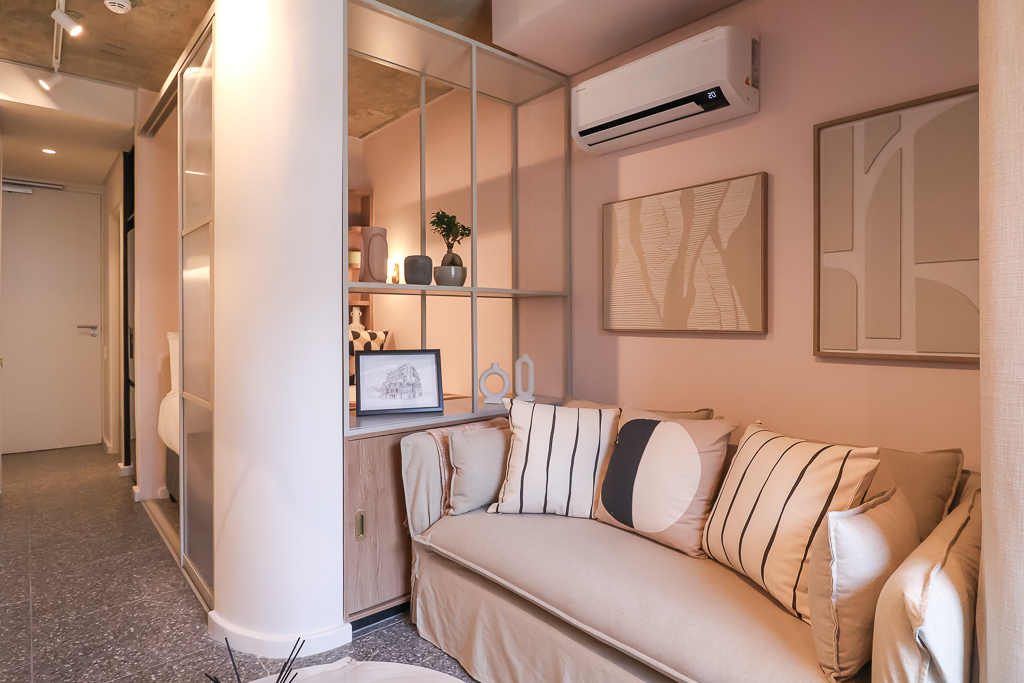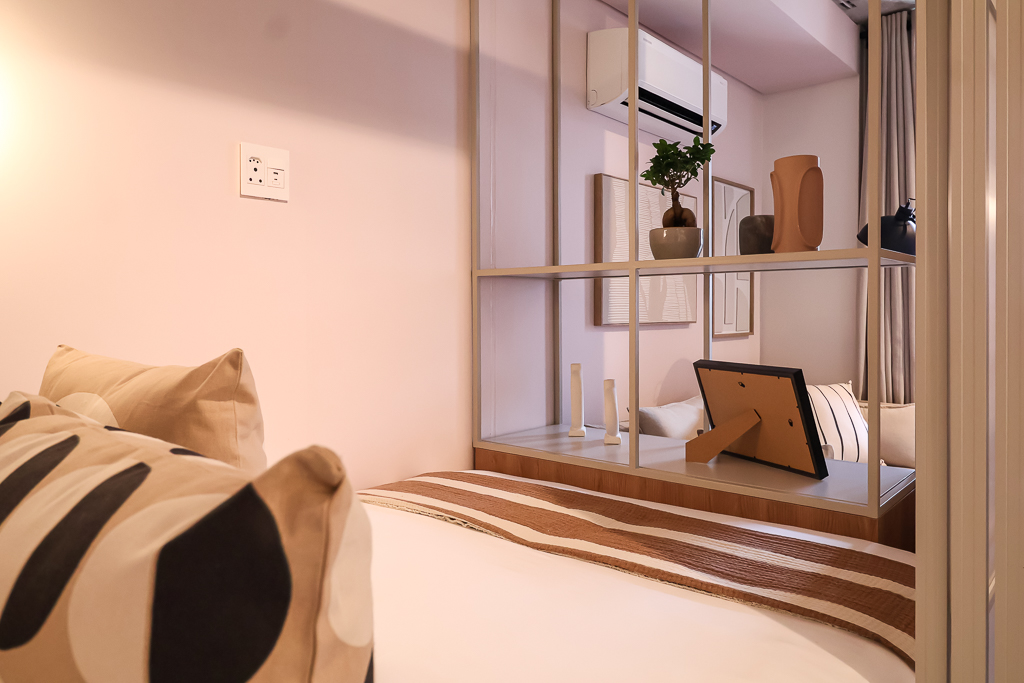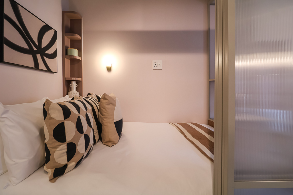 Partitioned bedroom area for added privacy.